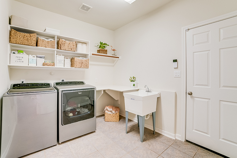 Clean and wipe tops of washer and dryer (if accessible)